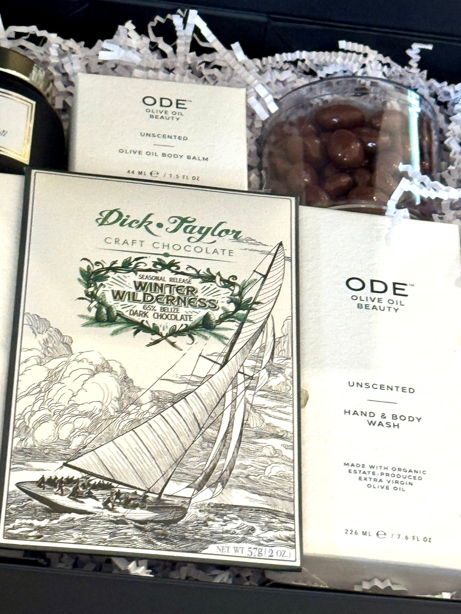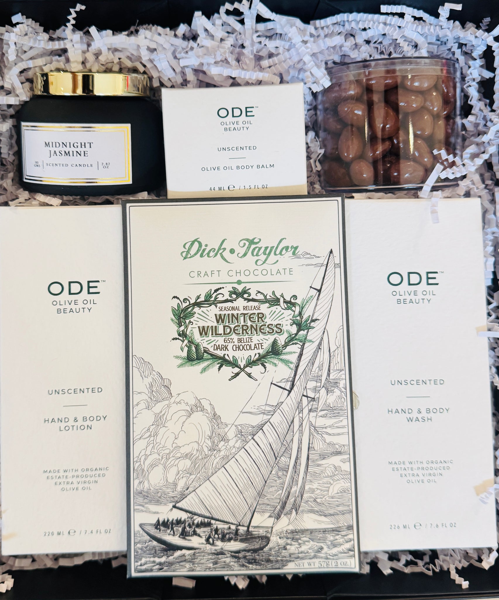 A luxurious collection designed to nurture and comfort. This elegant gift box blends self-care essentials with artisanal treats, making it the perfect way to unwind and indulge.
