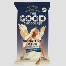 Inside, you'll find a 65% cacao dark chocolate bar from The Good Chocolate, offering a naturally sweet, keto-friendly option for chocolate lovers.